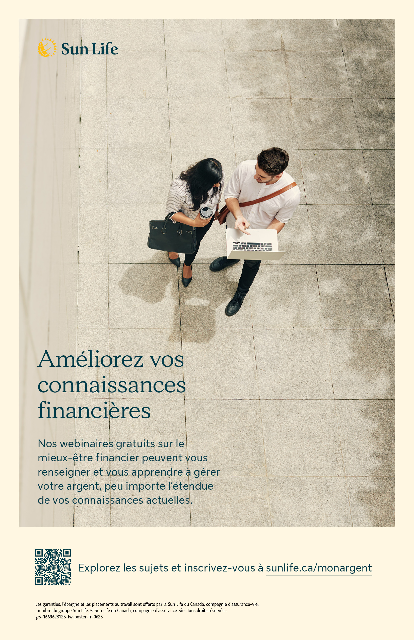 Nos webinaires sur le mieux-être financier peuvent vous aider à améliorer vos connaissances et à prendre le contrôle de votre argent, peu importe vos connaissances actuelles. Les sujets traités touchent entre autres la gestion de l’argent, les placements et la planification de la retraite. Les participants peuvent s’inscrire en visitant sunlife.ca/monargent.